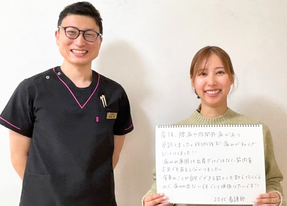 産後/股関節痛/首こり/肩こり/腰痛でお悩みのM.I様 職業:看護師